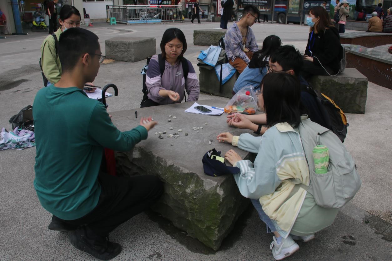 选手们玩“扔石子”