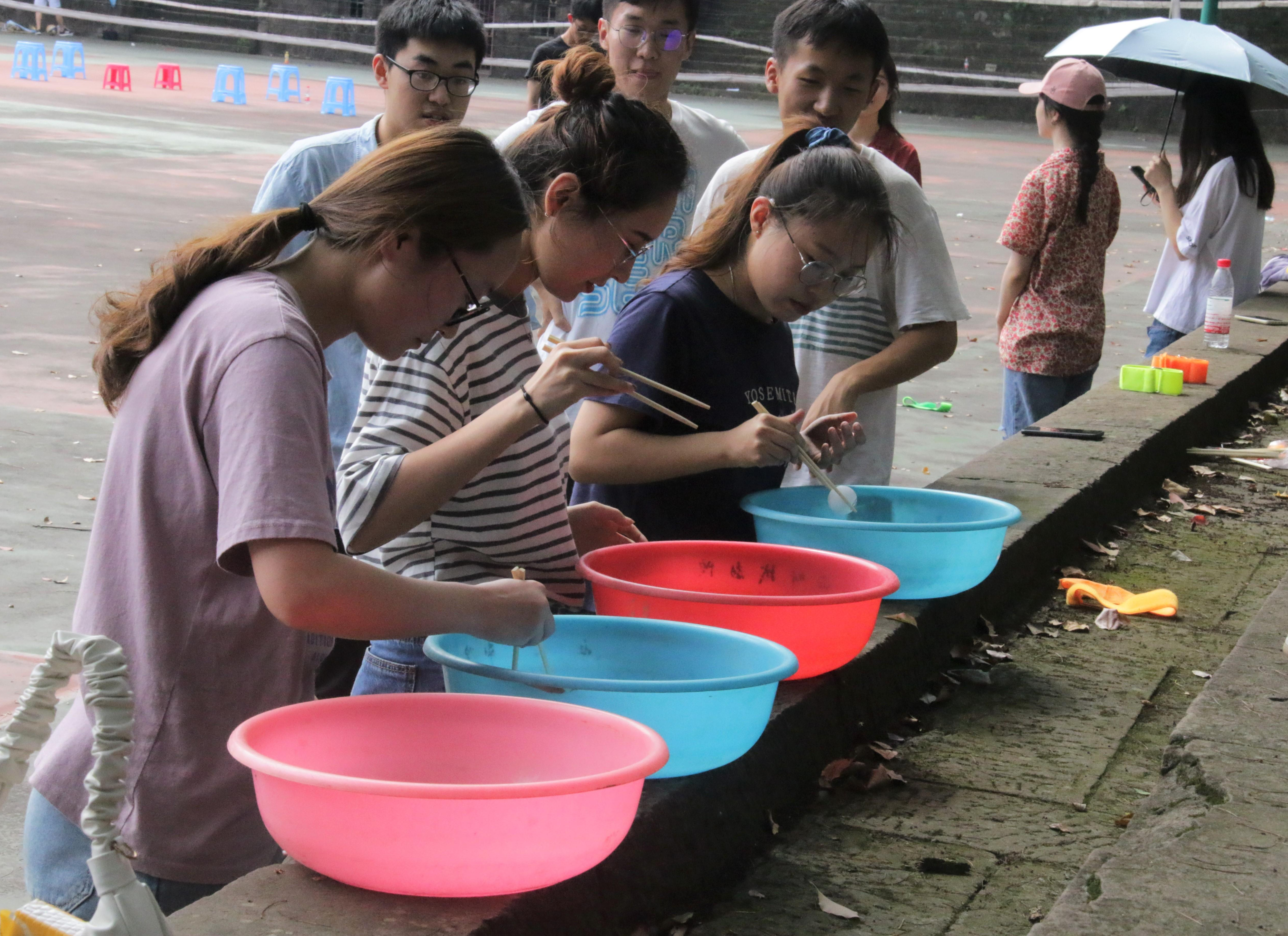 趣味运动会筷子夹乒乓球项目