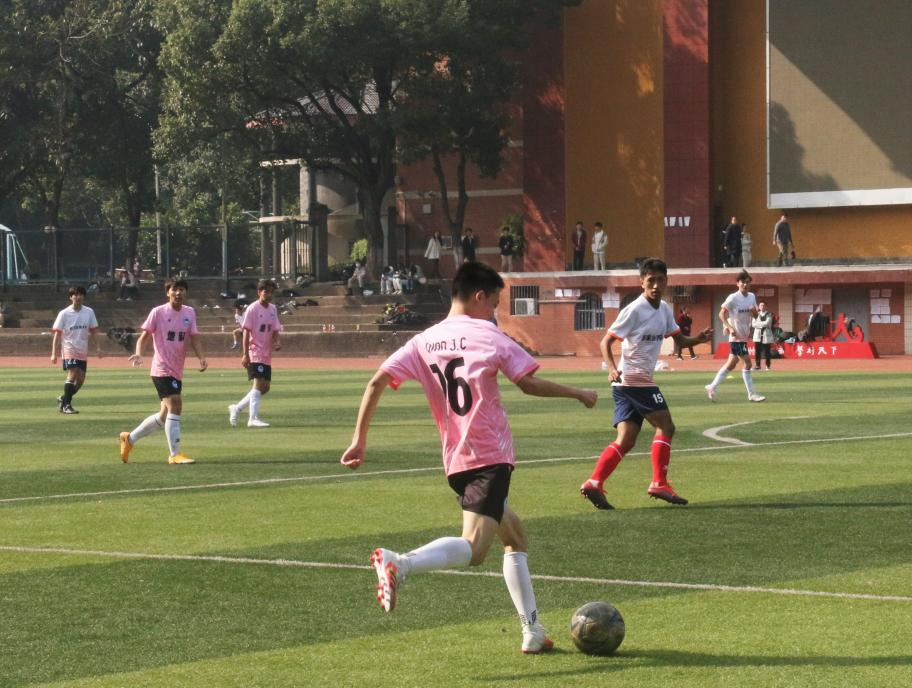 短暂休息后,双方易边再战,下半场比赛开始。对方球队在总结上半场的经验后,加强攻势,多次试图攻破我方球门,但均被我方守门员拦截。我方球员在夺取球权后,4号球员唐一杰绕过对方防守队员,抓住时机,以精准长传球助攻7号球员,再夺一分,将全场气氛推向高潮。随着距离比赛结束的时间越来越近,对方球员试图突破射门,远传任意球,连过两人,但都未能进球。最后,哨声响起,比赛正式结束。