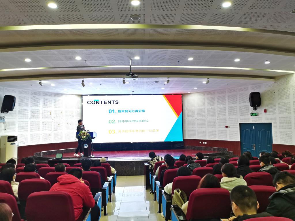 2020级地理科学(师范)专业孙嘉璇以快乐期末为主题,向同学们分享了期末备考的心得,包括具体学科的建议、关于快乐寒假的一些思考等内容,激起了同学们认真学习的信心。