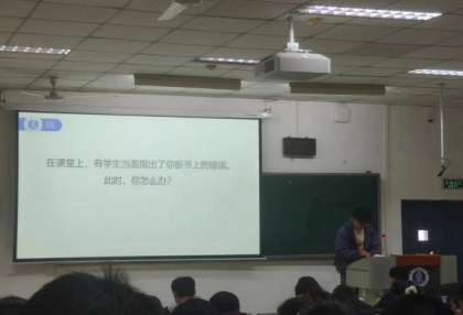 初试之后,表现优秀的八位同学进入复试环节,模拟结构化面试的抽题回答部分,在关于学习工作实务、人际关系、活动组织等十八道题目中随机抽取作答。各位选手在六分钟内完成抽题读题,并以清晰的思路和可行的解决措施赢得了在场同学们的热烈掌声。