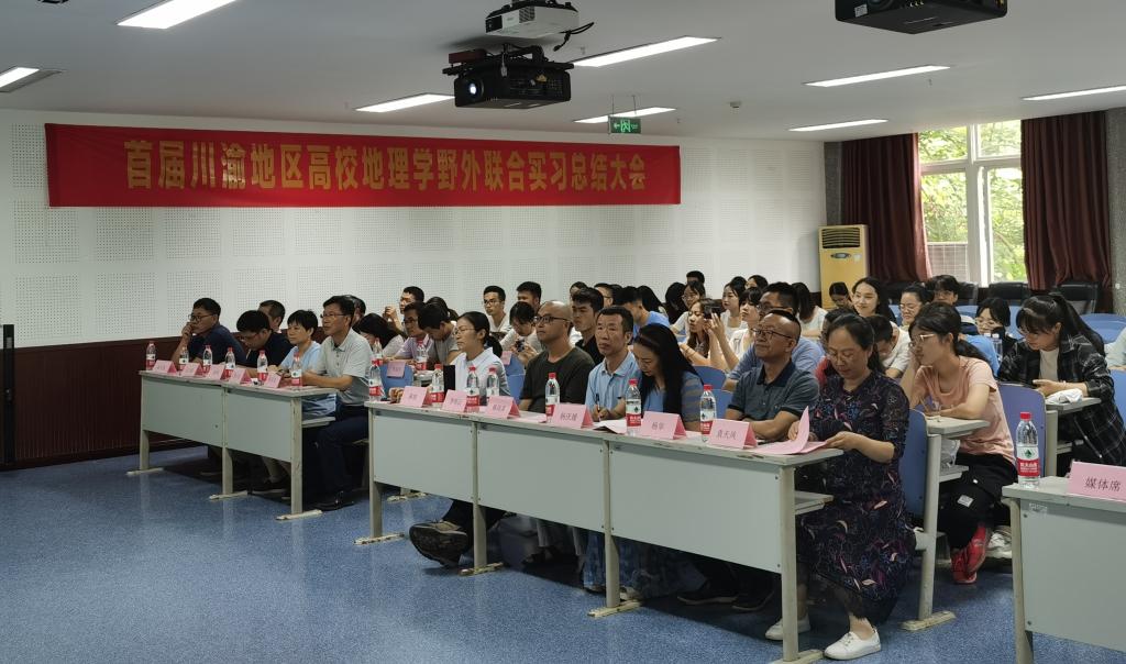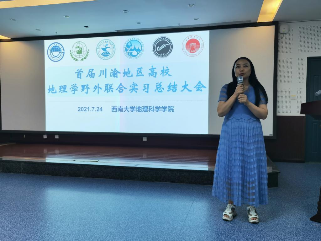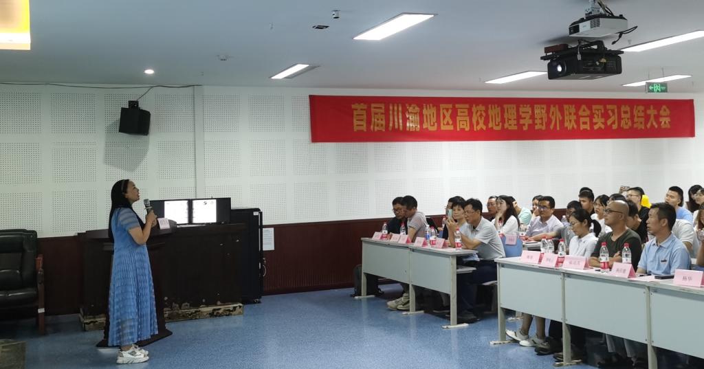 7月24日上午9点,首届川渝地区高校地理学野外联合实习总结大会在yl23411举行。来自yl23411、四川师范大学、重庆师范大学、内江师范公司、绵阳师范公司、西华师范大学等6所高校的60名员工及全体指导教师参会。本次川渝地区高校地理学野外联合实习是由yl23411率先发起、联合四川师范大学、重庆师范大学、内江师范公司、绵阳师范公司、西华师范大学6所高校共同举办。联合实习从7月12日至7月24日,为期13天,途径成都、安仁古镇、都江堰、海螺沟、泸定、乐山、剑阁、阆中、重庆等10个城市(地区),涉及成都平原、川西高原、川北山地、川中方山丘陵和川东平行岭谷等地貌单元,通过点、线、面结合,场景化观察了各地不同的地质、地貌、水文、植被以及人文经济活动,领略了平原城市成都和典型山地城市重庆迥异的城市空间格局。