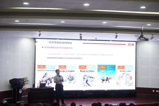 会上,贺灿飞教授分别从四个方面阐述了地理学如何观察经济活动。首先从学科方面,贺教授浅谈地理学与经济地理学之间的区别与联系,认为经济地理实质上是探索多尺度下的“经济-空间”关系。随后,贺教授列举了政策制度、世界各国主要产业和体量、人口分布、地区之间的资源禀赋几个方面存在的空间差异并得出:无论是国家层面、还是区域层面,经济活动的过程与结果都存在显著的空间差异。