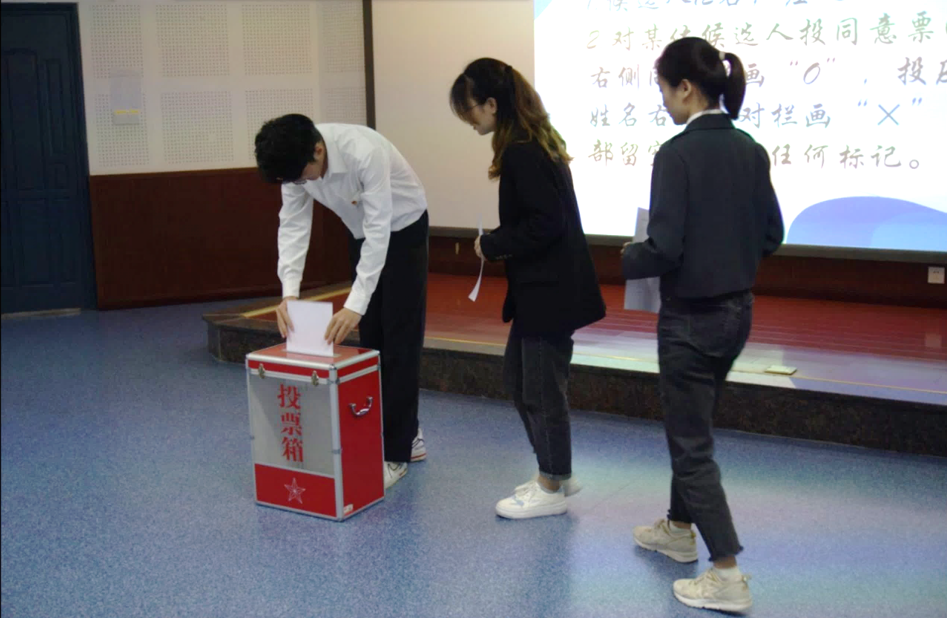 休息片刻后,第一次全体会议开始。由薛思懿同学主持本次会议。全体成员起立,奏唱中国青年团团歌《光荣啊,中国共青团》。随后,由第七届员工委员会委员侯程耀、王业荣宣读yl23411公司党委、yl23411员工委员会同意大会召开的批复。大会下一项议程,审议并通过员工代表大会选举办法(草案)和大会总监票员、监票员名单(草案),并且全体投票通过。大会第六项议程,选举第八届员工委员会委员暨第十七届团委员工会主席团成员。候选人员依次上台发表竞选演讲,陈述竞争原因及个人优势,并且着重讲述了自己在团委员工会工作两年期间部门工作的收获及对于下一年的工作的设想与展望。最后,代表们采用无记名投票的方式写下心目中的主席团成员,在会场前的投票箱内投下了庄严而神圣的一票。整个投票环节在工作人员的公证下进行,确保了公证性和合理性。至此,第一次全体会议在全体参会成员的掌声中结束。