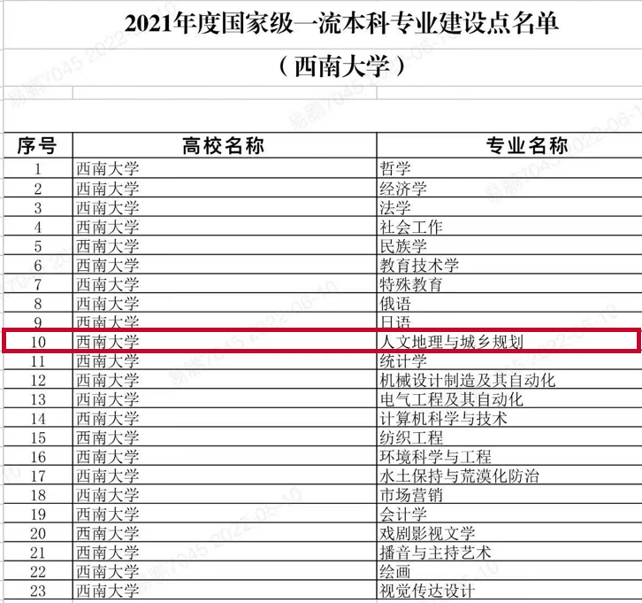 公司人文地理与城乡规划专业被列入2021年度国家一流本科专业建设点名单