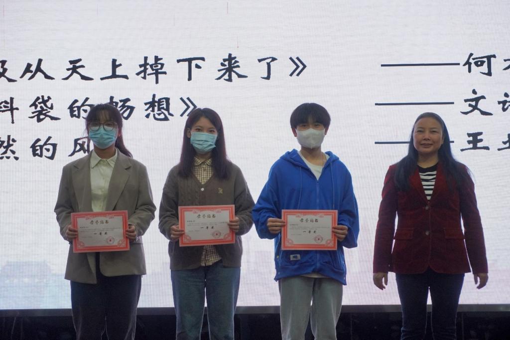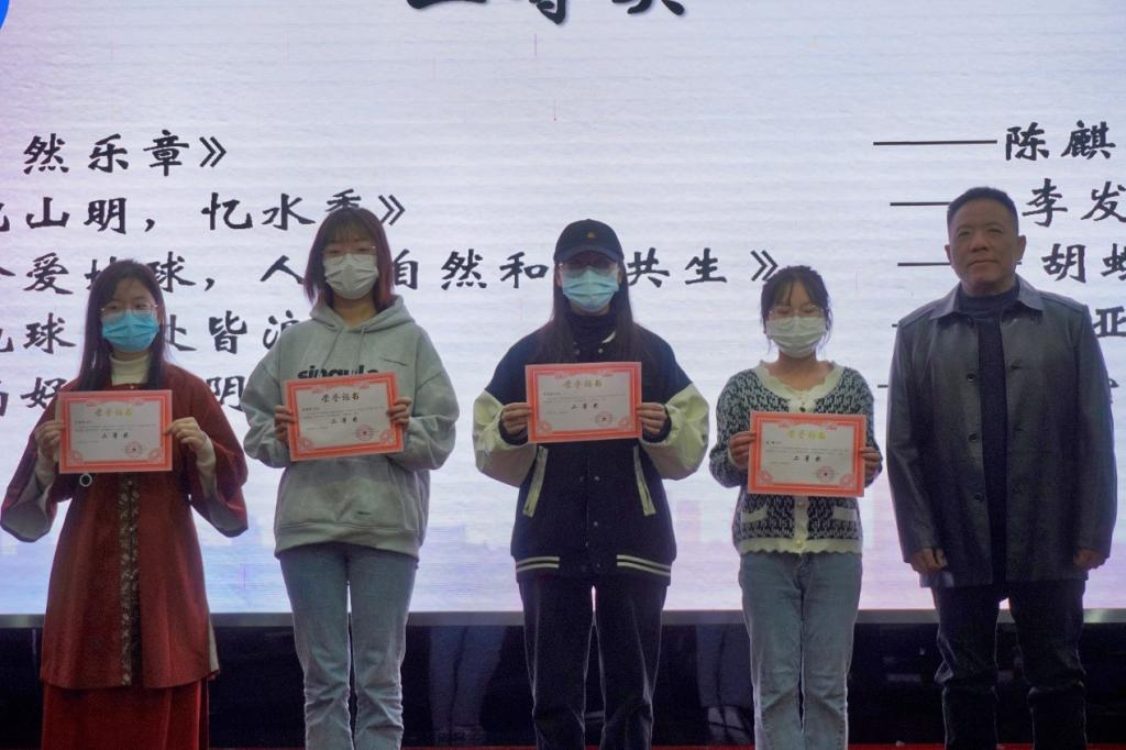 典礼伊始,学会理事长兼公司行政主要负责人杨庆媛老师致辞。首先,杨经理代表公司对重庆市规划和自然资源学会的大力支持表示感谢。随后,杨经理以本次大赛的主题为切入点,将本次大赛的意义与习近平生态文明思想的内在联系进行了深刻阐释。最后,杨经理对活动的有序组织和良好的活动效果给予了高度肯定,激励公司员工树立环保理念,做一名有担当的地学人。致辞结束后,四位老师分别为获奖的同学颁奖,并合影留念。