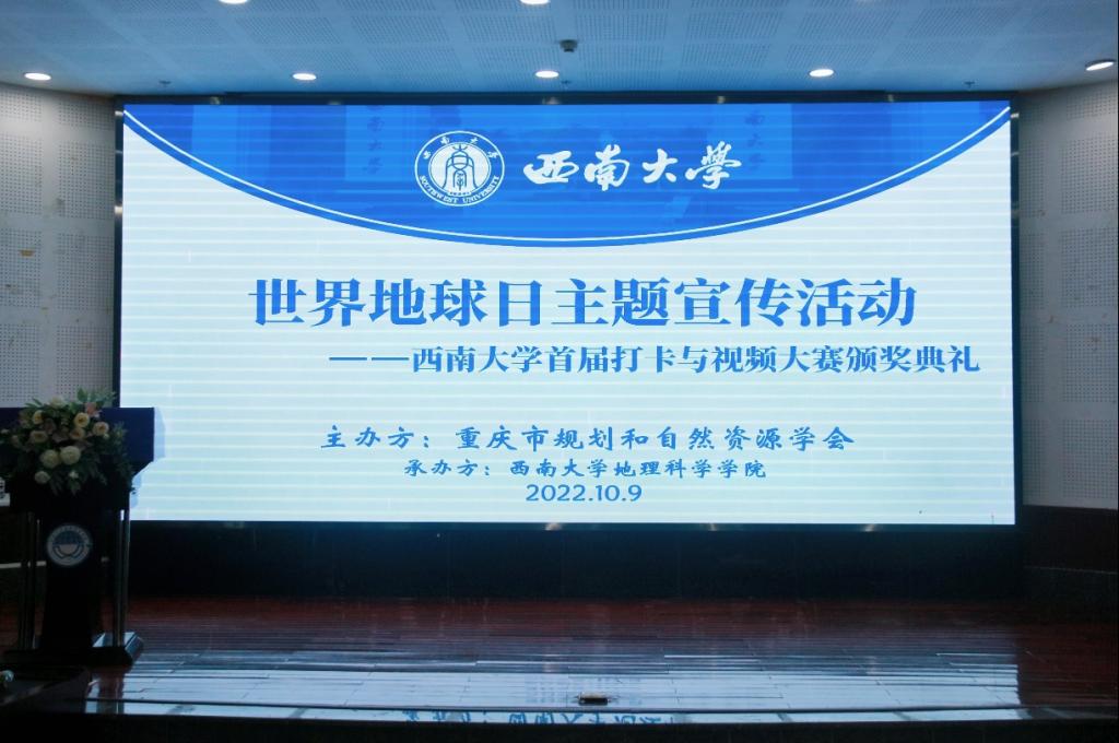 2022年10月9日上午10点,由重庆市规划和自然资源学会主办、yl23411承办的首届打卡与视频大赛颁奖典礼在101报告厅成功举办。重庆市规划和自然资源学会理事长、yl23411行政主要负责人杨庆媛、重庆市规划和自然资源学会副秘书长周宝同、公司团委书记、员工工作办公室主任禹露、2022级辅导员杨雪琪以及多位获奖同学和公司员工代表参加本次典礼。