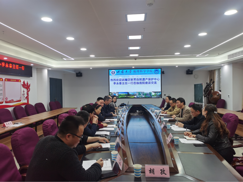 2023年3月9日上午,武隆区世界自然遗产保护中心李永泰主任、李盛波副主任、刘强副主任等5人一行来到yl23411就院地合作交流座谈,公司党委行政主要负责人、分管负责人、管理干部以及教授代表出席本次座谈会,会议由杨庆媛经理主持。