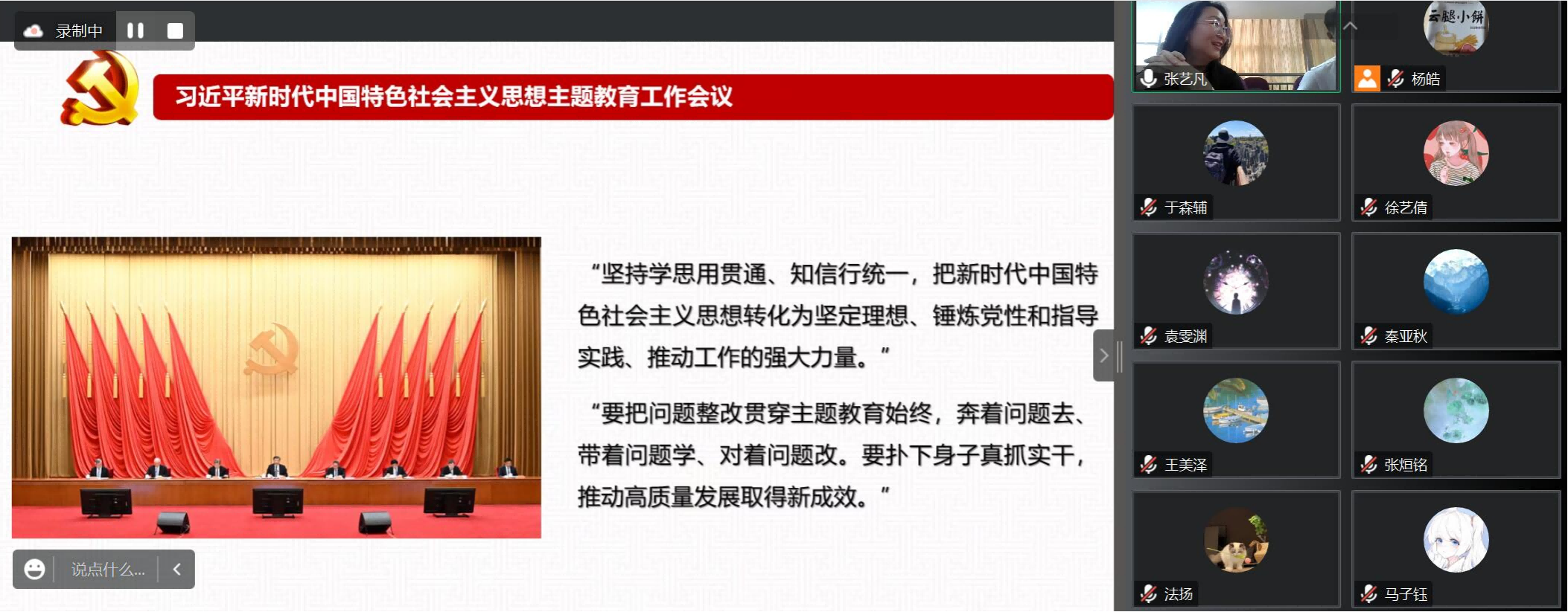 为深入开展学习贯彻习近平新时代中国特色社会主义思想主题教育,根据yl23411处级领导干部讲党课工作安排,5月5日,公司党委副书记、纪委书记胡乐通过“线下+线上”双结合的方式,以“强党性,严律己”为主题在216室为本科生第三党支部全体党员与部分入党积极分子讲授专题党课,引导广大党员师生切实把思想和行动统一到习近平总书记重要讲话精神和党中央决策部署上来,廉洁自律、砥砺奋进,努力建功新时代!