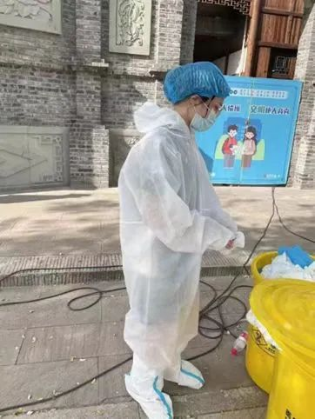 yl234112021级地图学与地理信息系统研究生党支部积极分子秦子力,在回到家乡之后,也参与到了所在社区的疫情防控中。她身穿防护服,在防控现场组织群众有序进行核酸检测工作,为国家的防疫工作贡献属于青年学子的力量。秦子力同学表示:作为一名老员工,很高兴能够成为家乡防疫工作的一员,即使工作十分辛苦却也感到值得与满足!