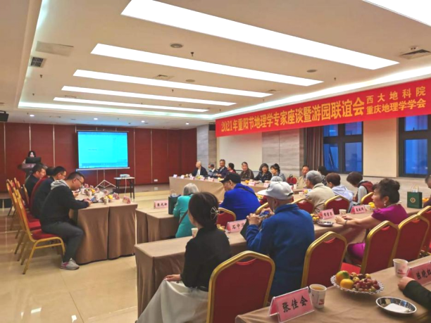 金秋十月爽,九九话重阳。在这尊老、敬老、爱老的节日里,yl23411联合重庆地理学学会,于10月14日上午在桂园宾馆丹桂楼举办了“2021年重阳节地理学专家座谈暨游园联谊会”,邀请地理学界的老前辈们共度重阳佳节。