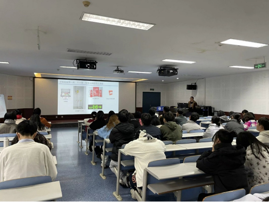 随后,潘进疆老师从实验室安全的重要性、公司实验室概况、如何在实验室中保护自己以及危化品申报购买流程等四个方面,为大家讲解实验室安全的相关内容,提高了同学们的安全防范意识。接着,支部组织研究生们实地走进公司实验室参观,禹朴家老师为大家现场演示规范的化学实验操作。
