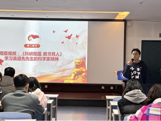 随后,自然地理学与第四纪地质学研究生党支部的孙西早同志带领大家学习《习近平总书记在第十个国家宪法日之际作出的重要指示精神》,观看《科研报国 教书育人》袁道先先生科学家精神视频。学习过后,与会同志纷纷展开讨论,踊跃发言。