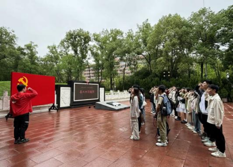 歌乐山下埋忠骨,烈士墓前祭英魂。随后,同学们来到了歌乐山烈士陵园,陵园四周松柏苍翠,气氛庄严肃穆。在烈士墓前,全体党员重温入党誓词。雨中的誓言坚定响亮,久久回荡。