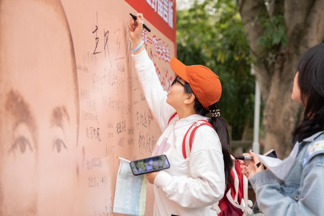 选手们在留言板前合影留念