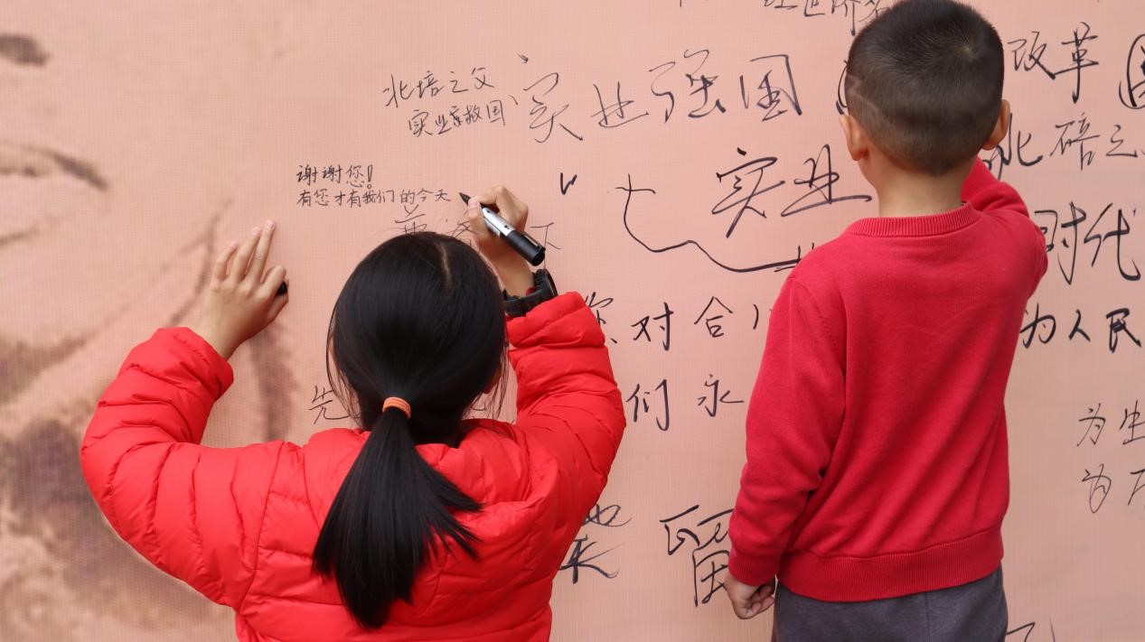 参与活动的小朋友在留言板写下对卢作孚的感谢